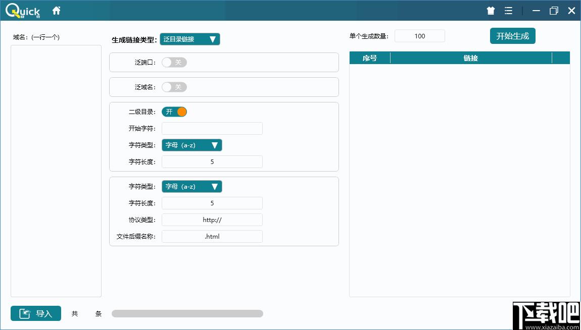 4、推送链接生成:可以批量的生成推送链接,链接的类型有泛目录链接,泛域名,寄生虫链接等三种类型。