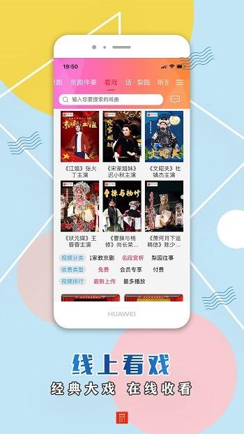 2、专注国粹京剧放送的手机app平台,软件上有各种种类的京剧供用户阅读查看,软件界面大方精致。
